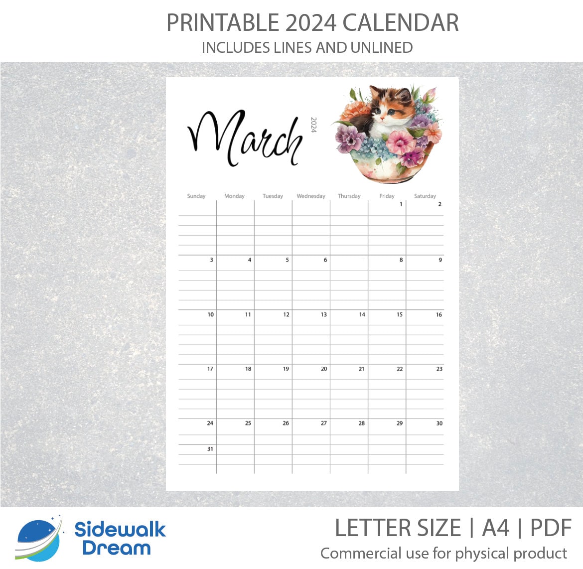 Source : www.dreamcalendars.comPrintable Cat Calendar 2024 Cat Calendar Digital Calendar PDF